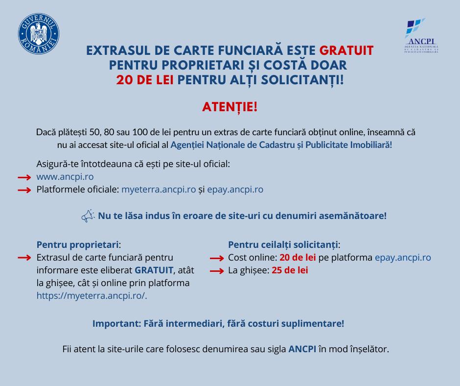 Achiziționați online extras de carte funciară pentru informare AICI ** Achiziționați online extras de plan cadastral AICI |